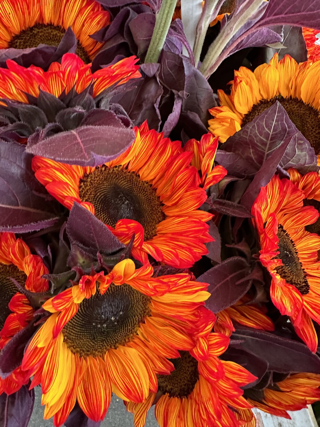 Catch my eyes on the Beautiful vibrant colors of the Sunflowers that were displayed at the Farmers Market. It's Autumn Atmosphere!!